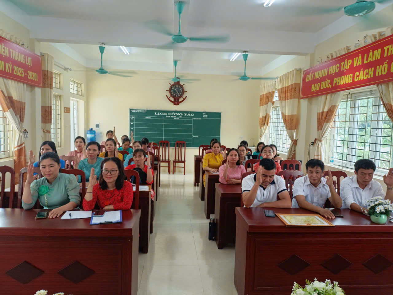 Kết thúc Hội nghị, đồng chí Hiệu trưởng phát động phong trào thi đua năm học 2025-2026, kêu gọi toàn thể viên chức, người lao động đoàn kết, sáng tạo, đổi mới phương pháp, nâng cao chất lượng giáo dục, quyết tâm thực hiện thắng lợi nhiệm vụ năm học mới.